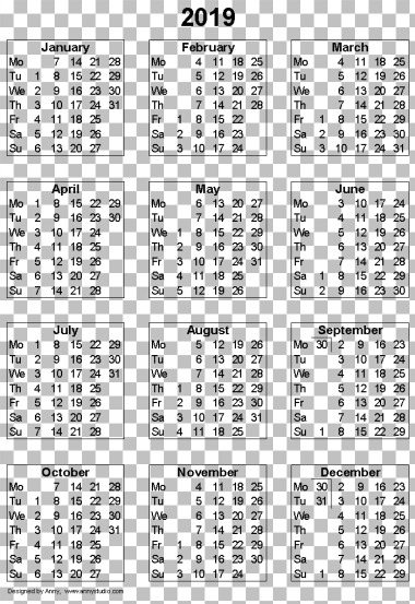 2019 calendário PNG Transparente