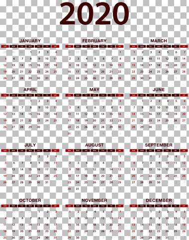 2020 Calendário PNG Transparente