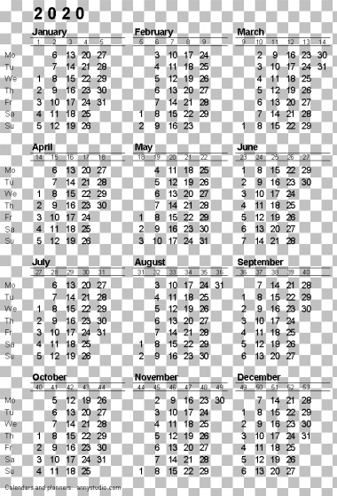 2020 Calendário PNG Transparente