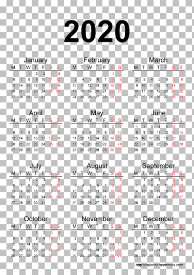 2020 Calendário PNG Transparente