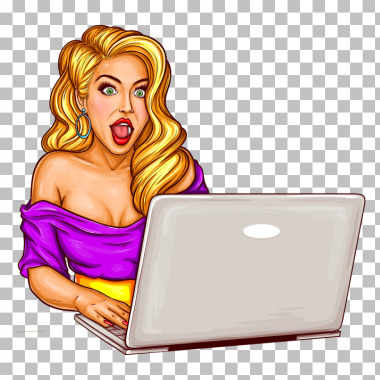 Garota de surpresa usando laptop clipart transparente PNG
