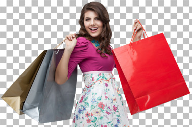 Menina excitada segurando saco de compras transparente PNG