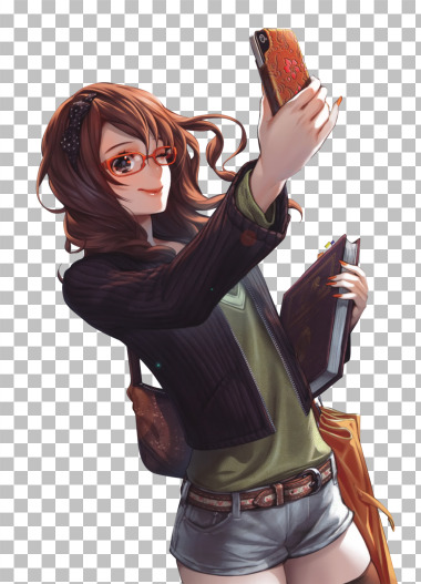 Menina de anime usando telefone celular transparente PNG