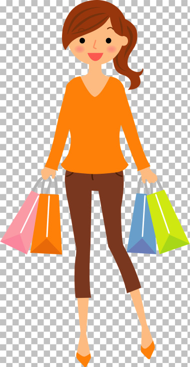 Menina feliz segurando o saco de compras PNG