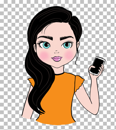 Garota de clipart vetorial usando telefone celular transparente PNG